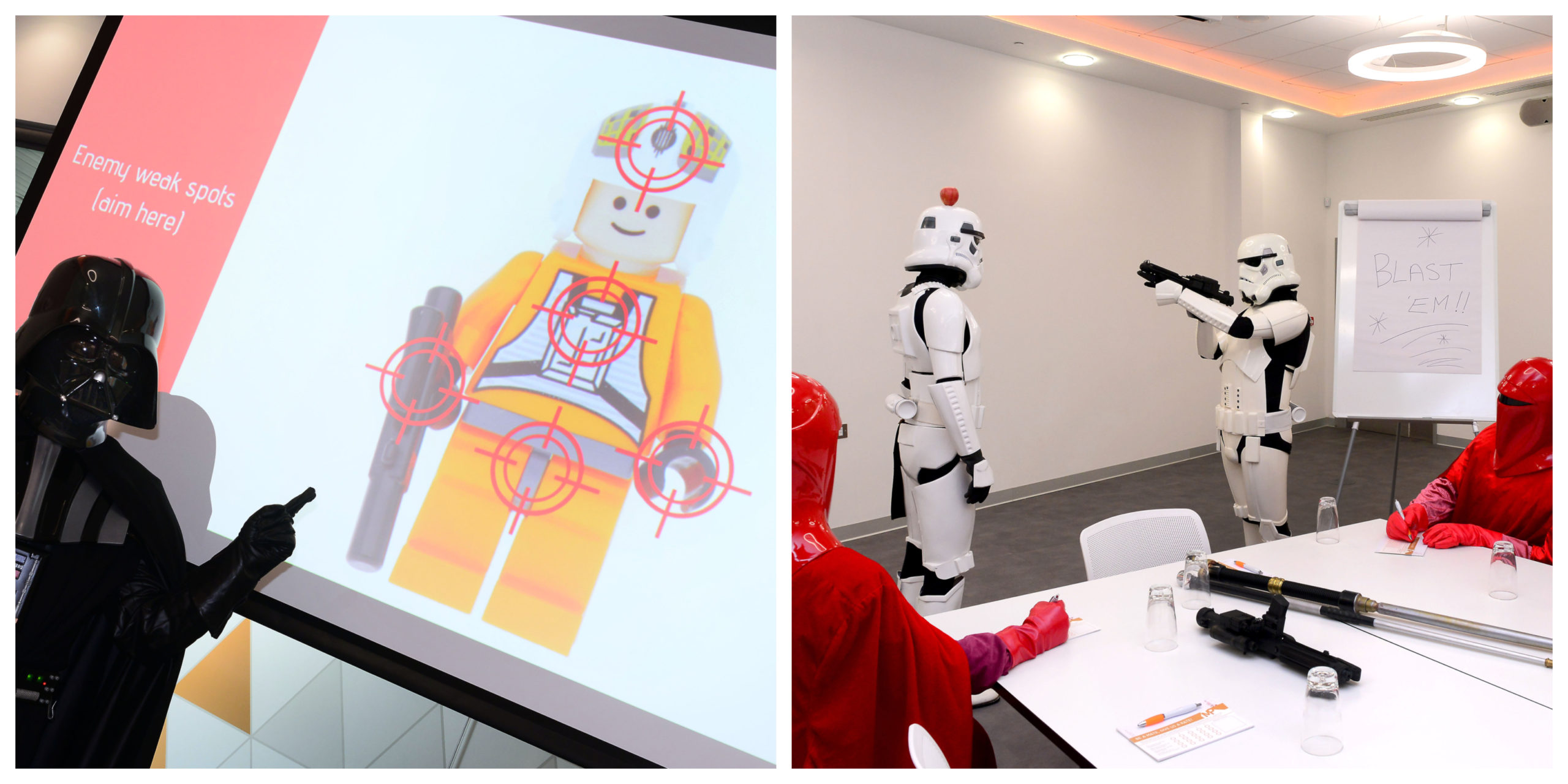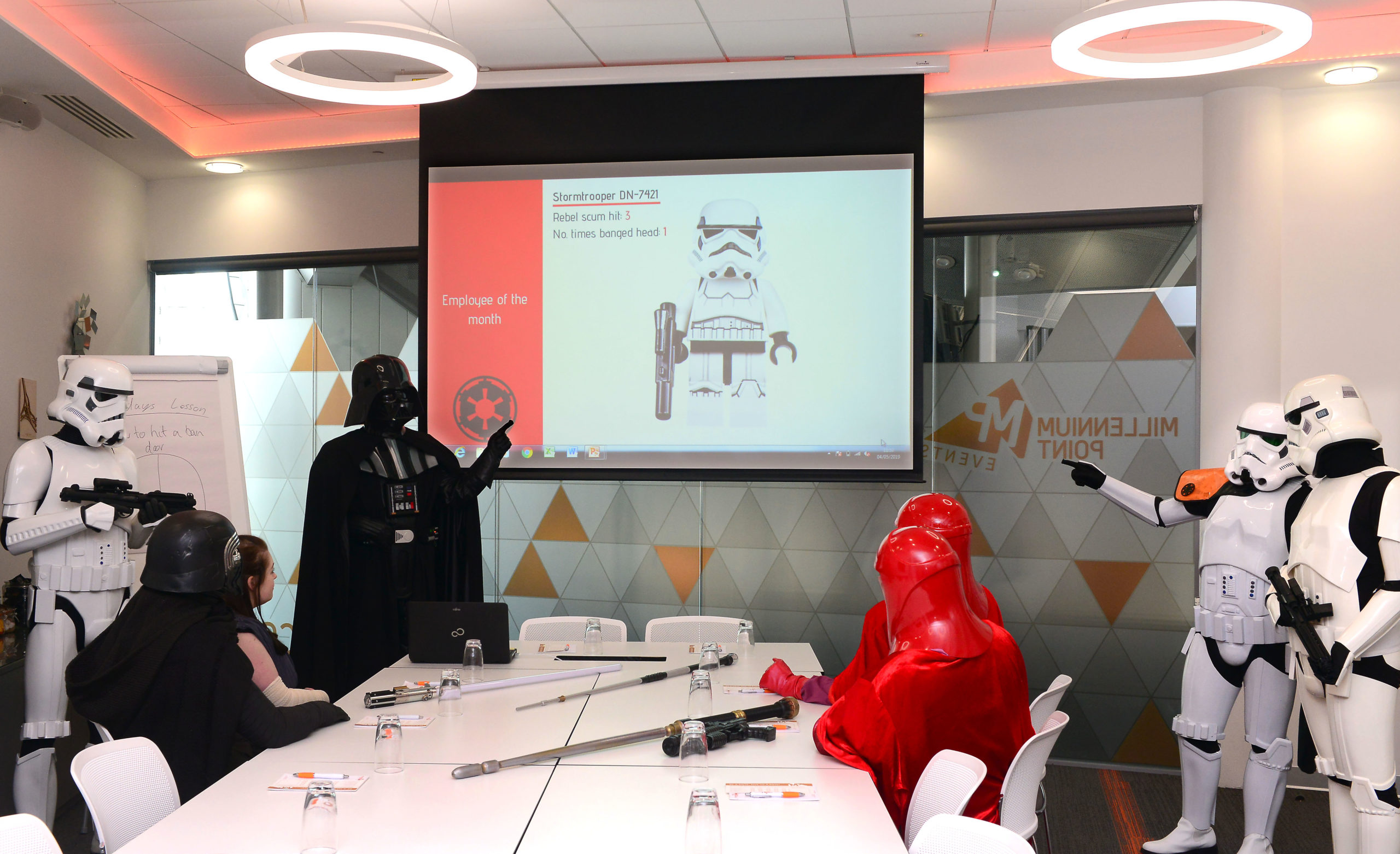 After a brief welcome, Lord Vader was making full use of the wireless presentation facilities in Connect with his ‘How to aim’ workshop – with a practical demonstration next door in the Connect Conference suite. There’s enough space for 120 delegates, then there’s definitely enough space for a little target practice. Rey was brought in as a consultant on the workshop following plummeting numbers in the Empire’s monthly happiness survey, which mostly sited Lord Vader and Kylo Ren as horrible bosses.
