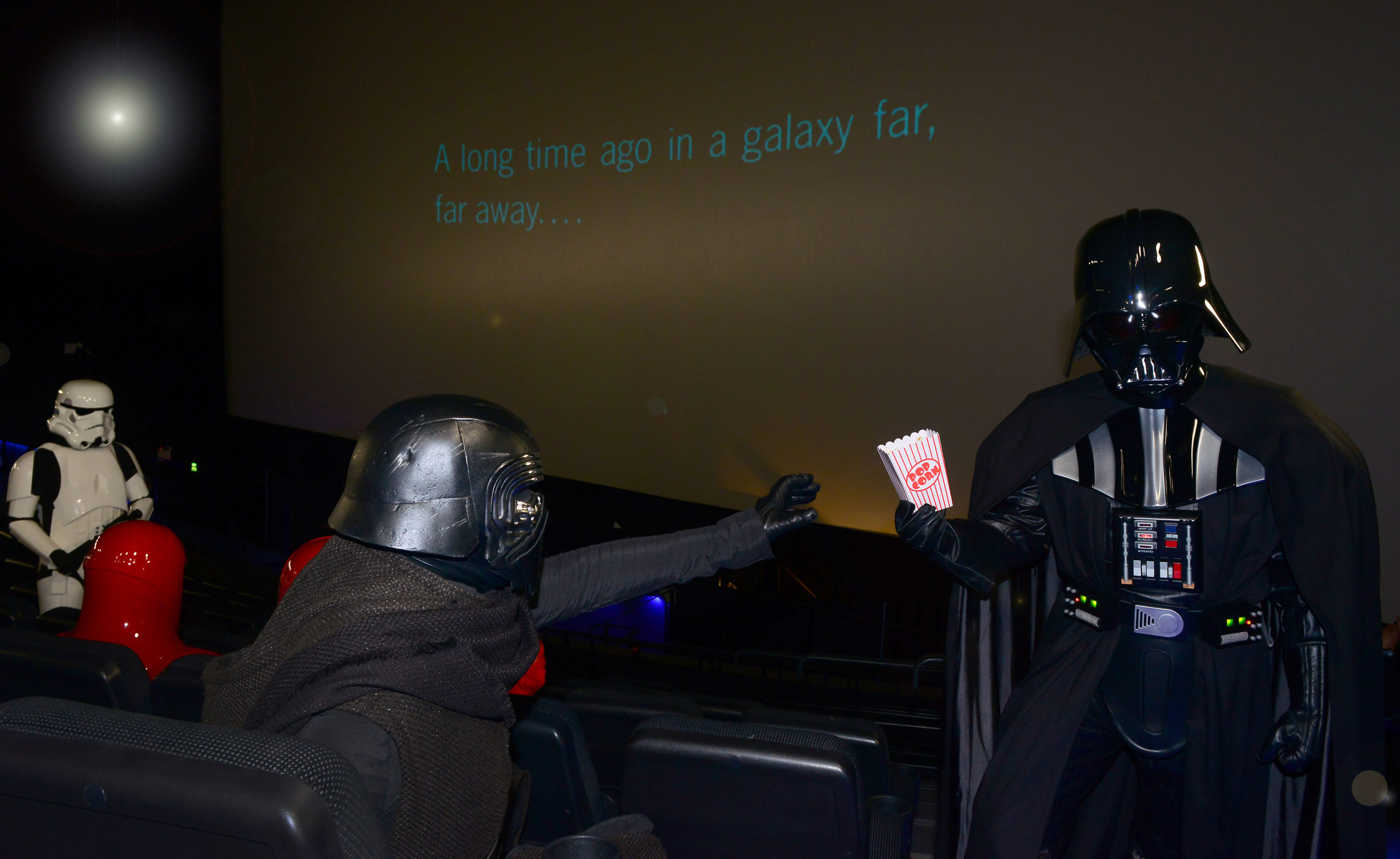 Heroes & villains alike set aside their differences over popcorn to test out the giant screen. Those Stormtroopers, they’re so vain! Any excuse to watch themselves. I’m sure they would have preferred it to be filled out to its 350 capacity, but oh well boys – maybe for The Rise of Skywalker?