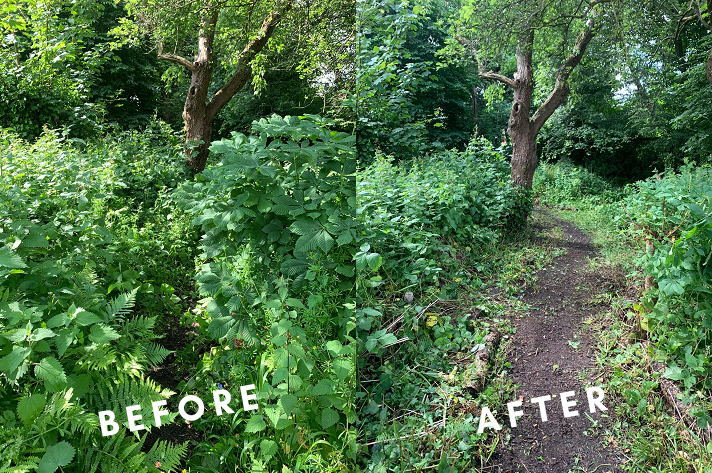 When Millennium Point heard about LoveBrum’s volunteering opportunities, they were eager to get involved. Earlier this month a few members of the Millennium Point team joined Moor Pool Heritage Trust to help tend to the green spaces. Once overgrown, the space’s pathways are visible once more for all to enjoy.