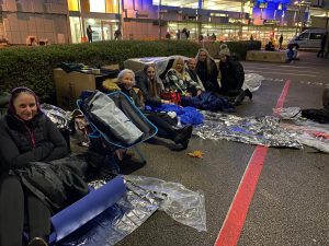 Much needed warmth was delivered with free vegan curry and hot drinks provided by the Langar Aid project.