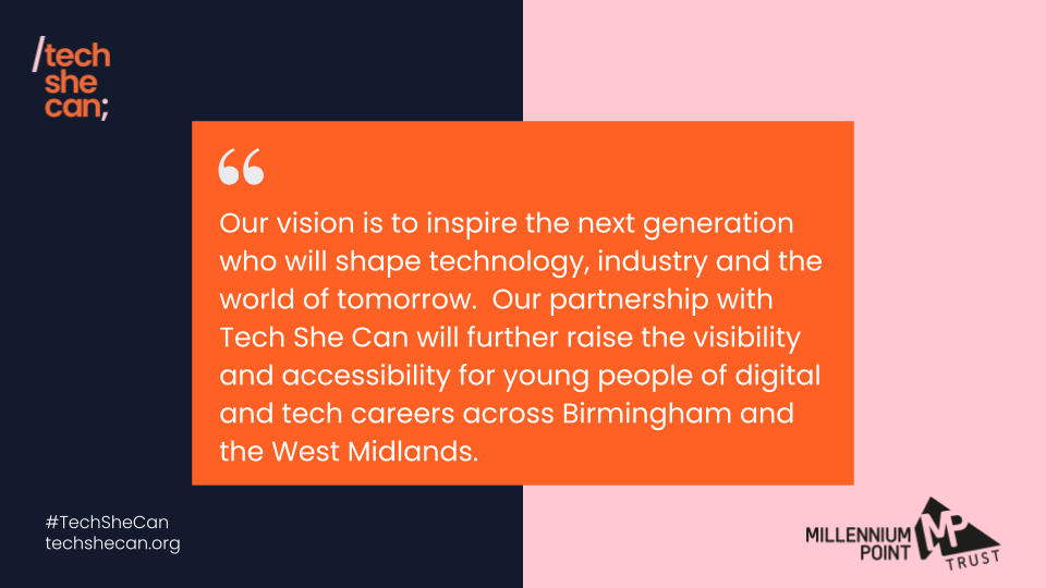 Joining up with Tech She Can will further raise the visibility and accessibility of digital and tech careers with women and girls across Birmingham and the West Midlands.