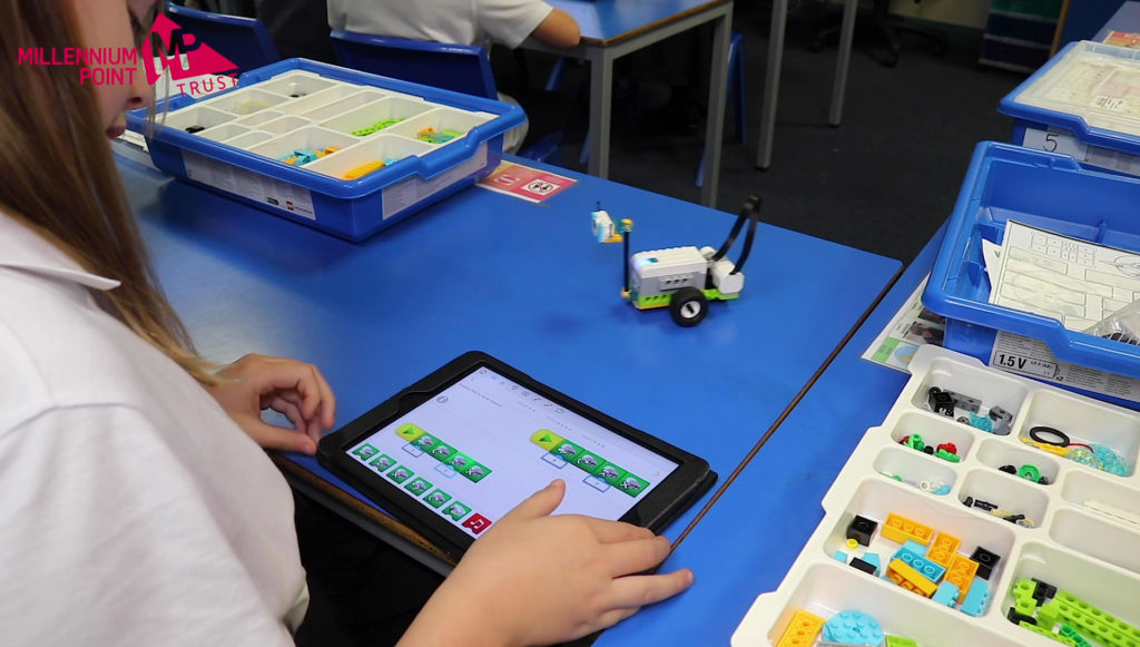 Great Bridge was seeking to enhance their computing curriculum within the school – upskilling the computer literacy of students and get more of them engaged in computing as a subject and possible career path. The school were limited by the resources they had available which included very old equipment and outdated and limited software programmes to teach with. The Millennium Point Trust Grant funded 17 Lego WeDo Sets and the children have learnt to build physical lego models including tilt and movement sensors and motors.