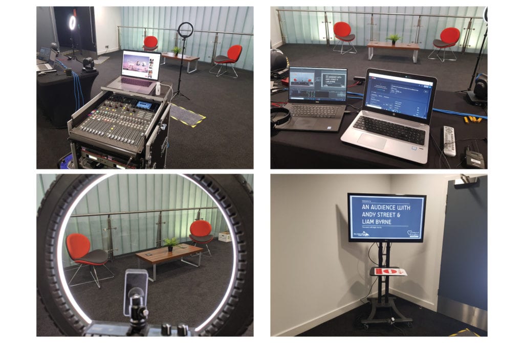 Our Events team worked hard behind the scenes to set up this live stream and make sure everything was delivered successfully. There was a number of features included on the live stream including on screen graphics, switching of different camera angles and an introduction video by the Lord Mayor of Birmingham’s Charity. Below you can see some different shots of the set up.